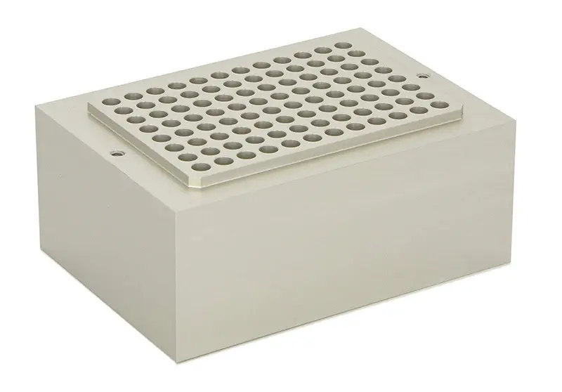 • Double layer lid • Extraction tool supplied with the blocks • ø x d of wells for microtubes: 6.2 x 14 mm • Block dimensions for microtubes: 140 x 100 x 40 mm • Block dimensions for microplates: 140 x 100 x 50 mm