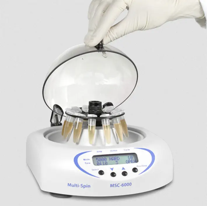 Supplied with a rotor for 12 tubes 1.5 / 2 ml, and a rotor for 12 tubes 0.5 ml and 12 tubes 0.2 ml