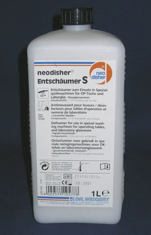 • Neodisher antimousse S : additif à base d'huile de silicone émulsionnée. Une petite dose suffit même à faible température pour éviter de la mousse