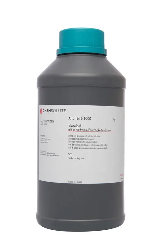 1616-1KG-KIS · SILICA GEL WITH COBALT-FREE HUMIDTY INDICATOR (GRANULES) 1KG