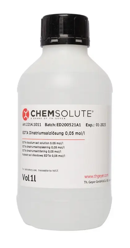2214-1L-KIS · EDTA DISODIUM SALT SOLUTION 0,05MOL/L (0,1 N, CERTIFIED BY ISO 17025) 1L