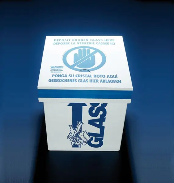 Boîtes rigides à monter soi-même pour l'élimination en toute sécurité des débris de verre en laboratoire.