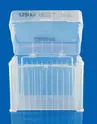 257775 · Recharge pointes ClearLine® Prime faible rétention 1250 µl longue graduée longueur : 98,40 mm - coloris : Bleu - support en carton