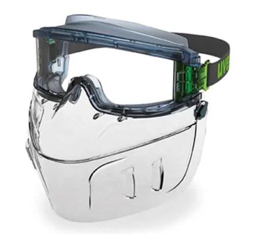 • Polycarbonate mask, PVC frame • Wide field of view • Device ventilation system • Possibility to wear eyeglasses • Treatment uvex supravision HC-AF (anti-fog inside 2 times higher than the norm and powerful external anti-scratch) • Lifting Face Protection • Allows wearing dust mask or half mask respirator
