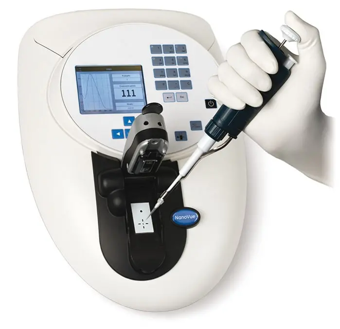 Le spectrophotomètre NanoVue Plus permet des mesures sur des micro-échantillons (< 2 µl). Grâce à son logiciel intégré, le pilotage du NanoVue ne nécessite pas la présence d'un ordinateur.