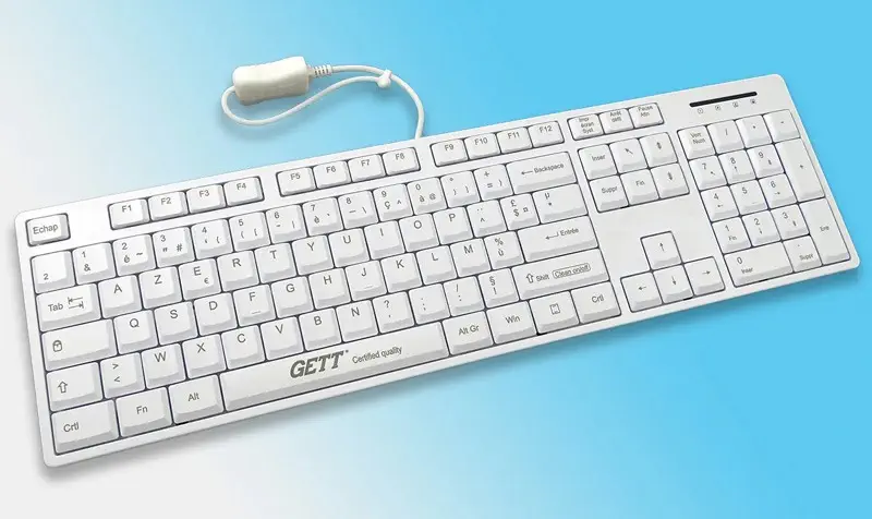 306602 · CLAVIER ETANCHE MEDICAL FILAIRE TOUCHES MECANIQUES IP68 AZERTY BLANC