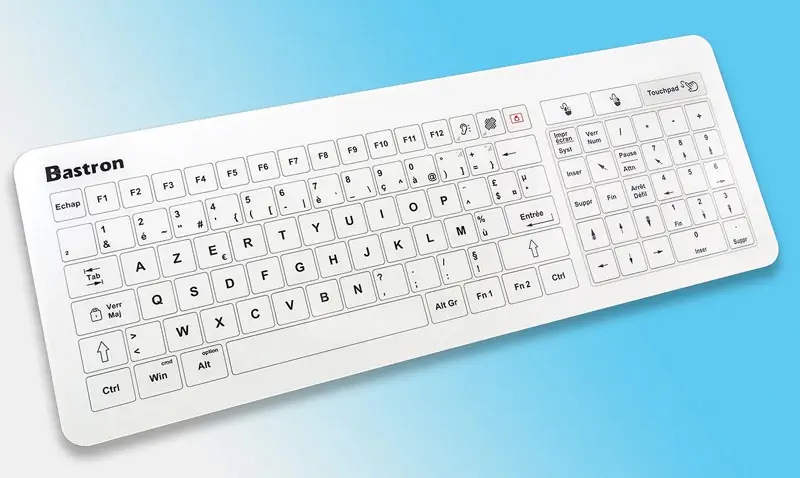306602 · CLAVIER ETANCHE MEDICAL FILAIRE TOUCHES MECANIQUES IP68 AZERTY BLANC