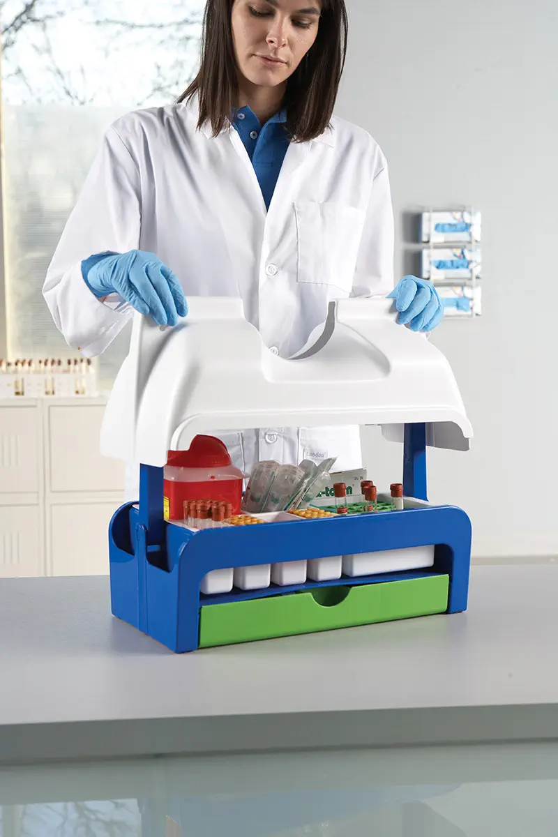 037946 · Portoir de transport à poignée avec un rack pour 36 tubes 16 mm