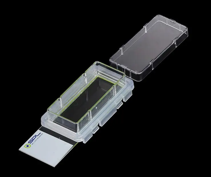 • Chambres de culture à 1, 2, 4, ou 8 compartiments fixées sur une lame (démontable) avec couvercle