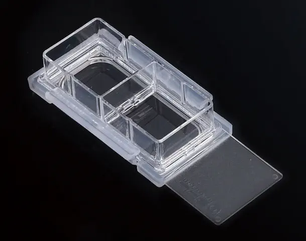 • Chambres de culture à 1, 2, 4, ou 8 compartiments fixées sur une lame (démontable) avec couvercle