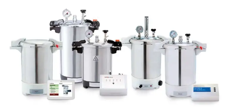 • 4 niveaux de températures/pressions de fonctionnement : 115 °C/0,7 bar, 121 °C/1,3 bar, 125 °C/1,4 bar et 140 °C/2,7 bar