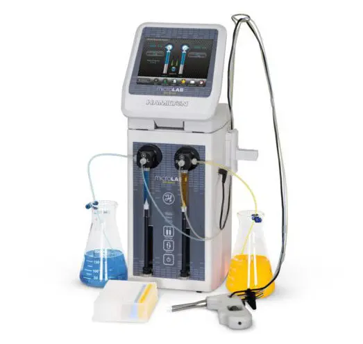 • Pompe de distribution semi-automatique de haute précision avec seringue • Interface utilisateur graphique simplifiée • Conçus pour diluer et distribuer rapidement et facilement des liquides • Seringue en verre borosilicaté • Piston et tubulures en PTFE/CTFE • Automatisent le processus de pipetage • Livrés avec un certificat d'étalonnage traçable conforme aux normes du NIST • Multiples interfaces de communication : Ethernet (RJ-45), CAN IN / OUT (RJ-12), TLL IN/OUT, SERIAL RS-232 • Possibilité de pilotage de l'instrument (Ethernet ou RS-232) puis de plusieurs instruments en chaîne (ports CAN), pilotage à distance (Kit de programmation optionnel nécessaire, référence 410532) • Matériel conforme EPA, FDA, GLP,GMP, et 21 CFR part 11 • Suivi de l'instrument possible à distance depuis n'importe quel ordinateur (logfile) • Distributeurs et diluteurs livrés avec une sonde manuelle Concorde (les références 491062 et 491063 disposent d'un double bouton), des tuyaux de remplissage et de distribution en PTFE, un portoir pour accessoires, des vannes universelles, un cordon d'alimentation