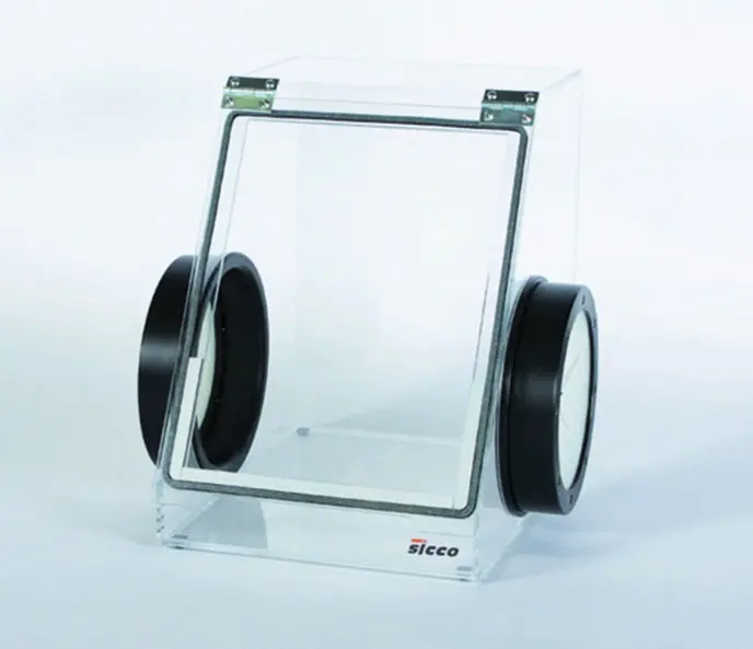 • Chambre en acrylique (PMMA) • Résistant à des températures allant de -20 °C à +70 °C • Pieds en caoutchouc • Ouvertures latérales pour gants • Poids léger, facilement transportable