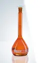 Fioles jaugées classe A, verre brun, bouchon verre.