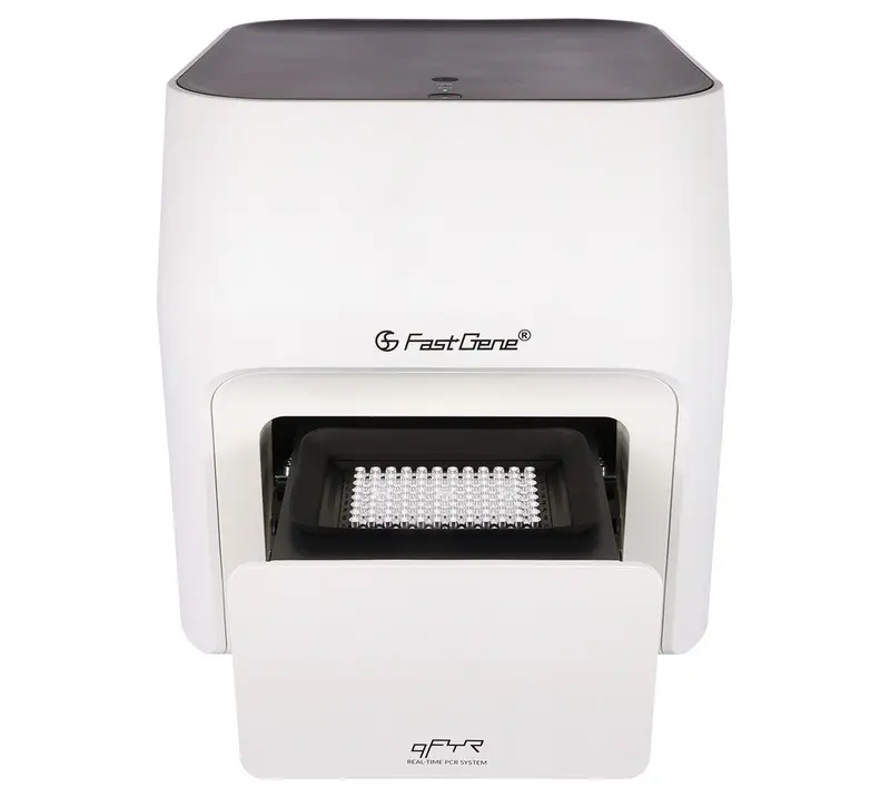 • FastGene® qFYR model: 4 multiplex-compatible fluorescence channels (FAM/SYBR Green I // VIC/JOE/HEX/TET // ROX/Texas Red // Cy5) • FastGene® qFYR Plus model: 6 multiplex-compatible fluorescence channels (FAM/SYBR Green I // VIC/JOE/HEX/TET // ROX/Texas Red // Cy5 // Cy5.5/Quasar 705/Alexa Fluor 680 // ATTO 425) • LED excitation, PMT detector • Compatible consumables: tubes, strips and semi-skirted or non-skirted 96-well 0.1 ml PCR plates (low profile) • Analysis software included: absolute quantification, relative quantification, SNP genotyping, HRM... • Temperature range of the block: 4 to 100 °C • Heating and cooling rate: 6 °C/sec • Gradient: 1-36 °C , 12 columns • Temperature precision, uniformity and accuracy: ?± 0.2 °C • Dimensions (W x D x H): 350 x 520 x 370 mm • Weight: 25 kg