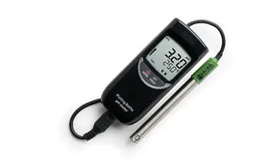 • Robust and waterproof construction • Supplied with pH electrode, buffer solutions and accessories in a case • With integrated temperature sensor • Checking the condition of the electrode on ignition • QUICK DIN connector with coding • HOLD function • Low battery indicator