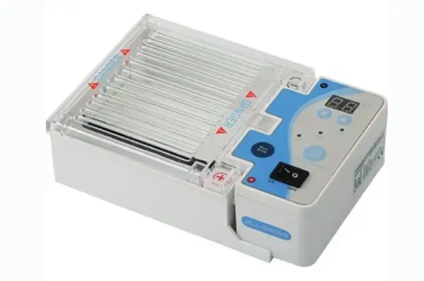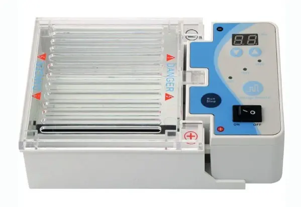 Système d'électrophorèse complet pour la réalisation facile et rapide d'électrophorèse horizontale.