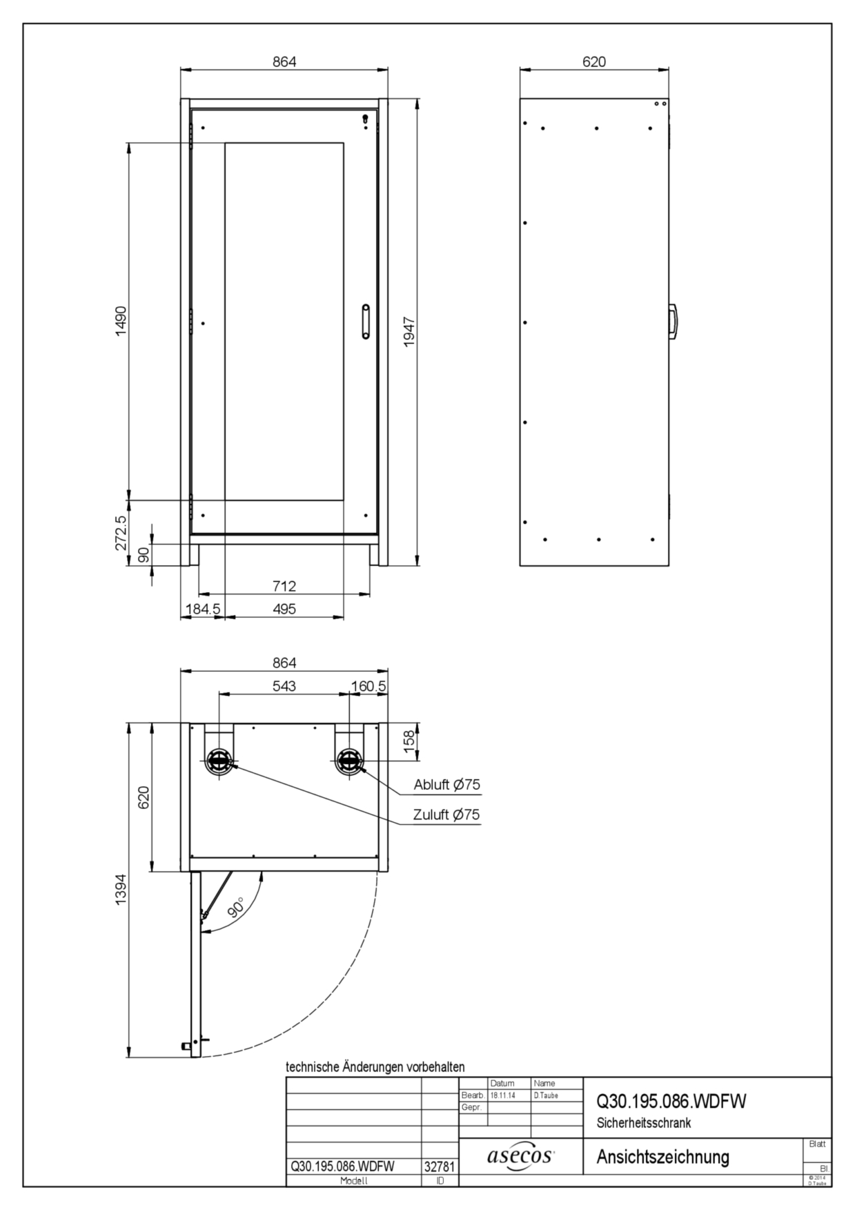 DimensionsL x P x H : 864 x 620 x 1947 mm