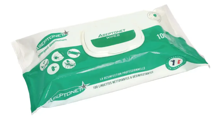 594201 · LINGETTES NETTOYANTES DESINFECTANTES PRESATUREES ASEPTONET TP2 SACHET DE 100 x12