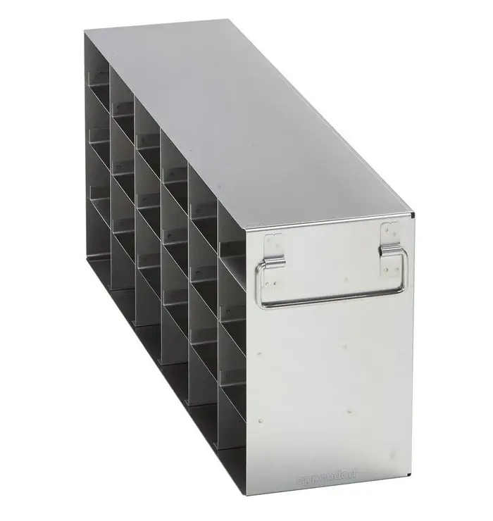6001021110 · Freezer Rack: CryoCube® F740/F570. 5-compartment, (compartment 1-4), side access, stainless steel - Dim. D x W x H (mm): 569 x 139 x 224 - for 24 DWP boxes