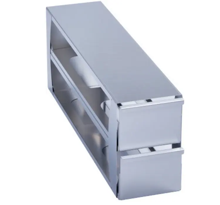 6001022410 · Freezer Rack: CryoCube® F740/F570. 5-compartment, (compartment 1-4), drawer, stainless steel - Dim. D x W x H (mm): 563 x 140 x 216 - for 8 boxes 102 mm