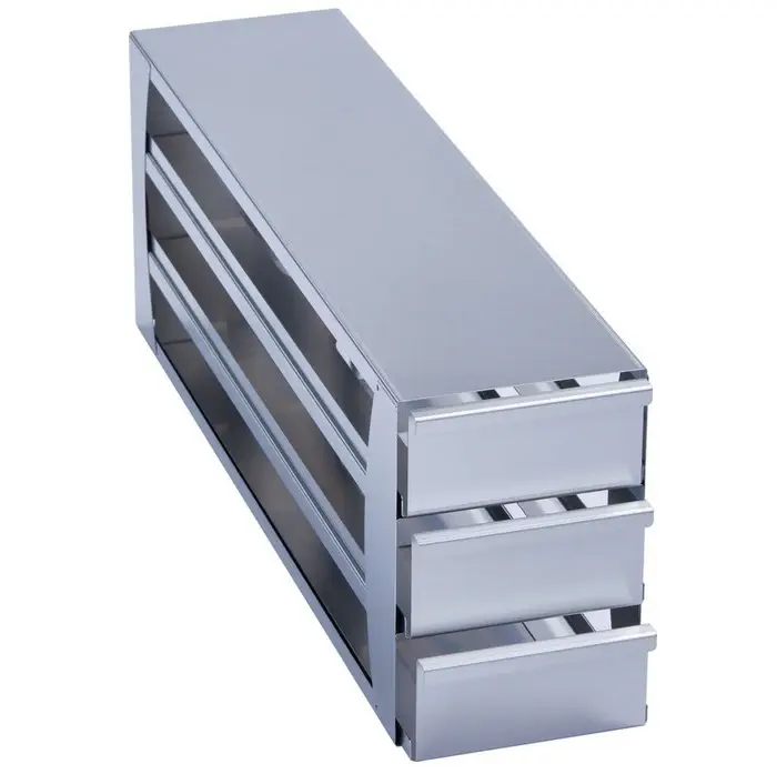 6001022910 · Freezer Rack: CryoCube® F740/F570. 5-compartment, (compartment 1-4), drawer, stainless steel - Dim. D x W x H (mm): 563 x 140 x 204 - for 12 boxes 64 mm