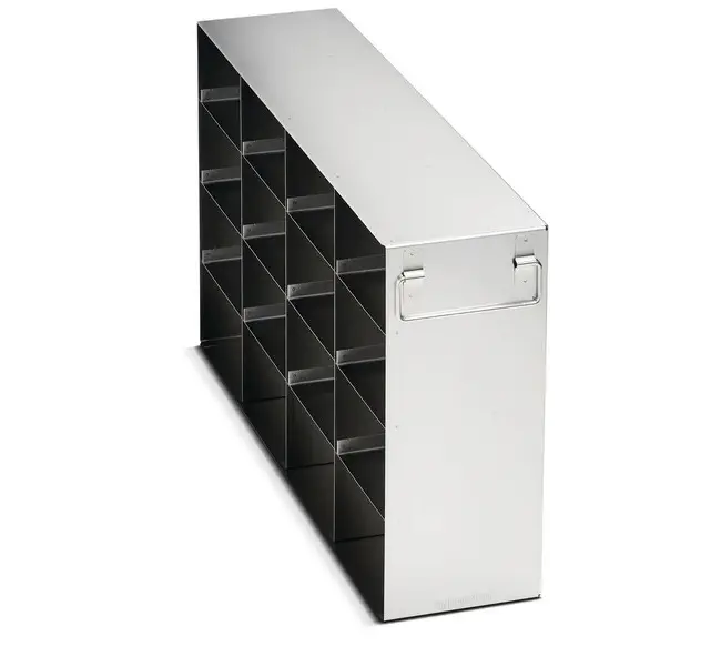 6001081310 · Freezer Rack: CryoCube® F740. 5-compartment, (MAX for 5th comp), side access, stainless steel - Dim. D x W x H (mm): 563 x 139 x 330 - for 16 boxes 76 mm
