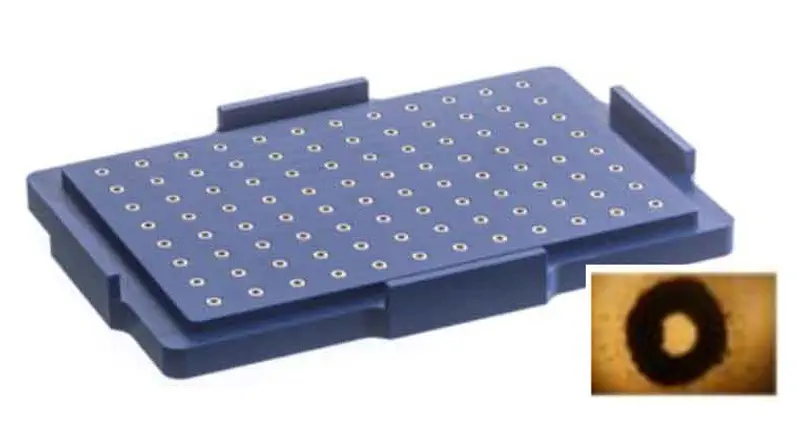 Pour Bio-impression magnétique. Support aimanté pour formation d'anneau en plaque 96 ou 384 puits