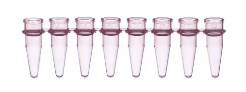 673273 · Barrette de 8 microtubes PCR en polypropylène coloris rouge