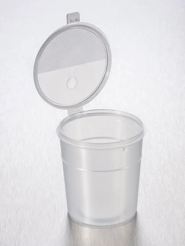 080944 · 300 ml sterile polypropylene bottle with hinged lid - ø x h: 75 x 88 mm