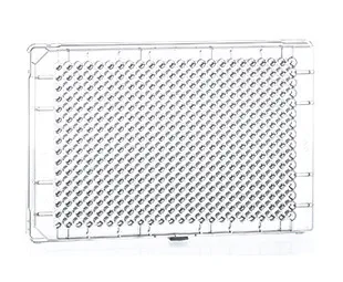 781061 · Plaque en polystyrène 384 puits standard - coloris transparent - fond transparent - stérile - fixation haute - Greiner Bio-One