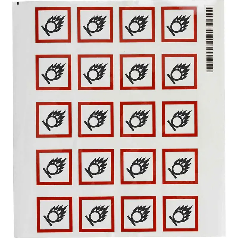 814016 · Etiquette GHS produits dangereux (norme NF) - Dim. (mm) 10 x 10 Matières comburantes - type MINI PIC1803-10X10-GHS03/ - planche de 96 étiquettes