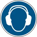 835705 · Etiquette obligation - signalisation ISO - Protection auditive - polyester adhésif - diamètre 200 mm