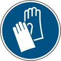 912765 · Etiquette obligation - signalisation ISO - Port de gants - polyester adhésif - diamètre 200 mm