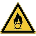 834199 · Etiquette danger type Substances comburantes 100 mm de côté (sur feuille) - NORME NF EN ISO 7010