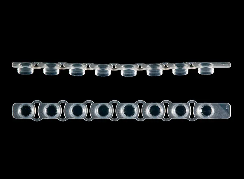 840542 · Strip of 8 flat caps for UltraFlux PCR tube, natural colour