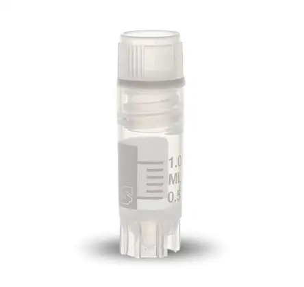 Cryotubes stériles en polypropylène. Les modèles 102027N, 102028N, 102051N possèdent un joint en silicone cylindrique, et non plat comme pour la plupart des cryotubes. Ce joint assure une étanchéité renforcée et une meilleure sécurité.