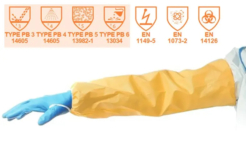 Description additionnelleNormes : EN 14605 Type PB 3 / EN 14605 Type PB 4 / EN 13982-1 Type PB 5 / EN 13034 Type PB 6 / EN 1149-5 / EN ISO1073-2 / EN ISO14126