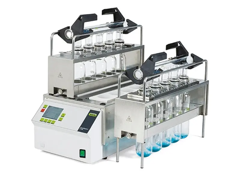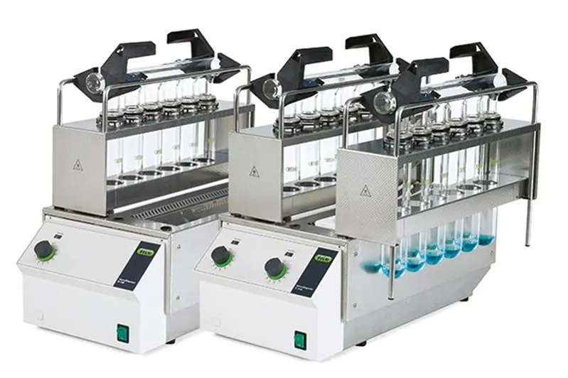 • Le SpeedDigester K-425 livré avec 8 tubes 300 ml, 1 collecteur de vapeur acide, un portoir, une plaque d'isolation