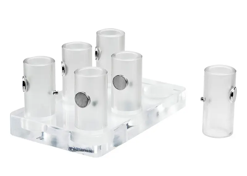 • Portoirs pour tubes avec poussoir à ressort pour un contrôle de la hauteur de l'aimant
