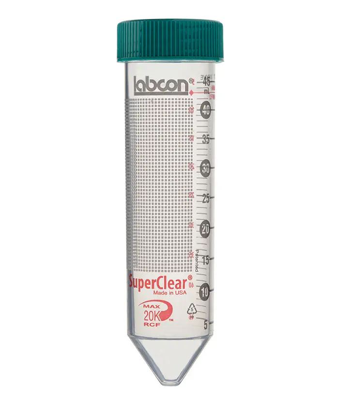 949915 · Tube à centrifuger 50 ml SuperClear - avec bouchon à étanchéité renforcée - non stérile - en vrac (tubes et bouchons emballés séparément)