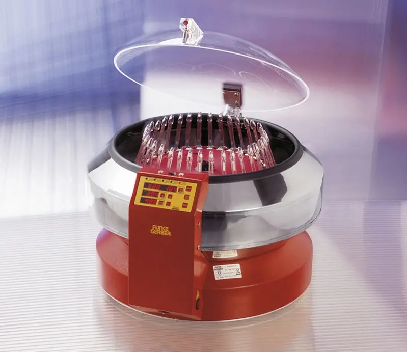 • Vitesse programmable de 600 tours / min à 1350 tours / min par pas de 10 tours / min (de 77 à 372g en fonction de la couronne) • Chauffage programmable jusqu'à 68 °C par pas de 1 °C • Temps de centrifugation réglable de 1 à 99 min • Verrouillage automatique du couvercle • Frein automatique • Livré sans couronne