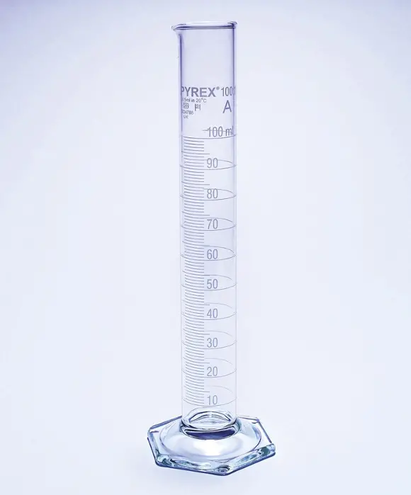 991621 · Eprouvette en verre borosilicaté 100 ml - graduation 1 ml - tolérance ± 0,5 ml - Hauteur max 260 mm