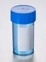 Pot de prélèvement 60 ml stérile avec étiquette, bouchon bleu