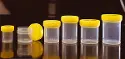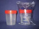 Pot de prélèvement 125 ml stérile avec étiquette, bouchon bleu